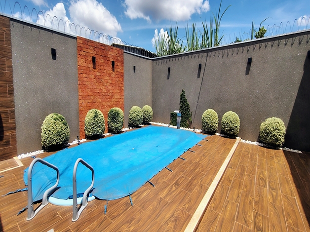 Linda casa com todo o conforto, com portão eletrônico, ⁠interfone, ⁠alarme monitorado, ⁠energia solar, ⁠central de gás, ⁠ar condicionado nos três quartos, ⁠cortinas, ⁠armários planejadas em todos os cômodos, ⁠piso porcelanato, ⁠toda na lage, ⁠área gourmet, piscina, uma casa onde você encontra conforto e bem estar para morar.