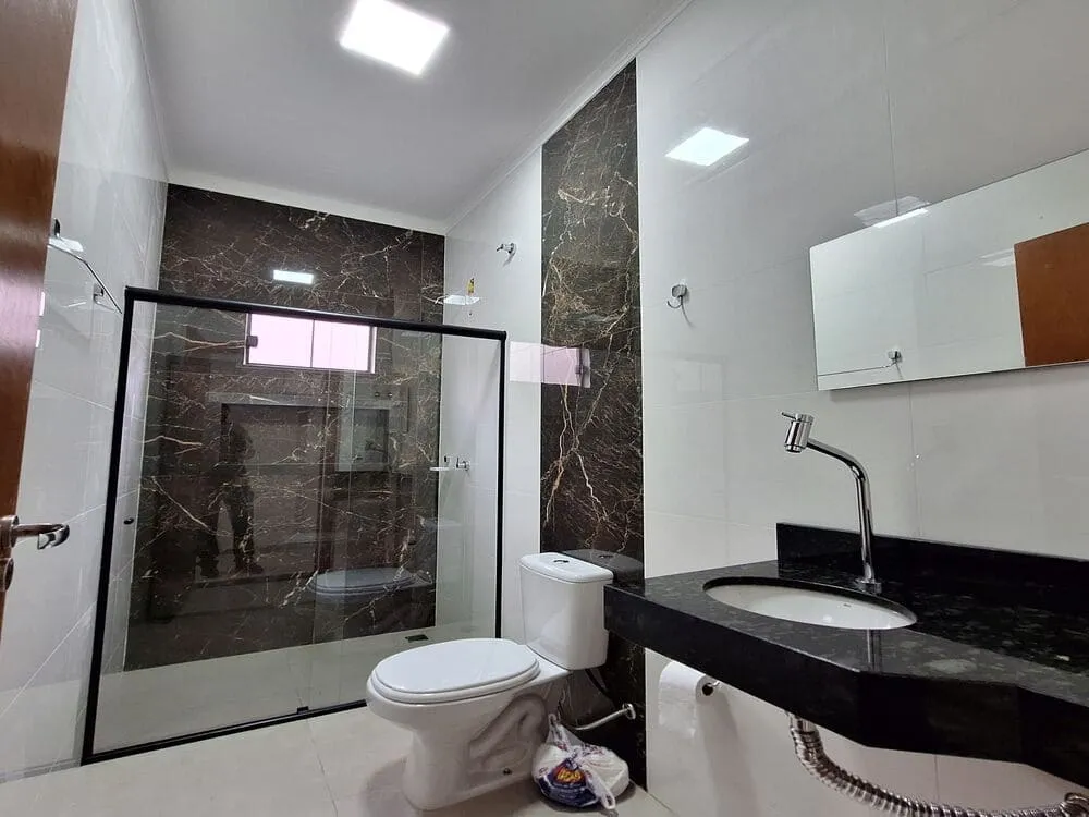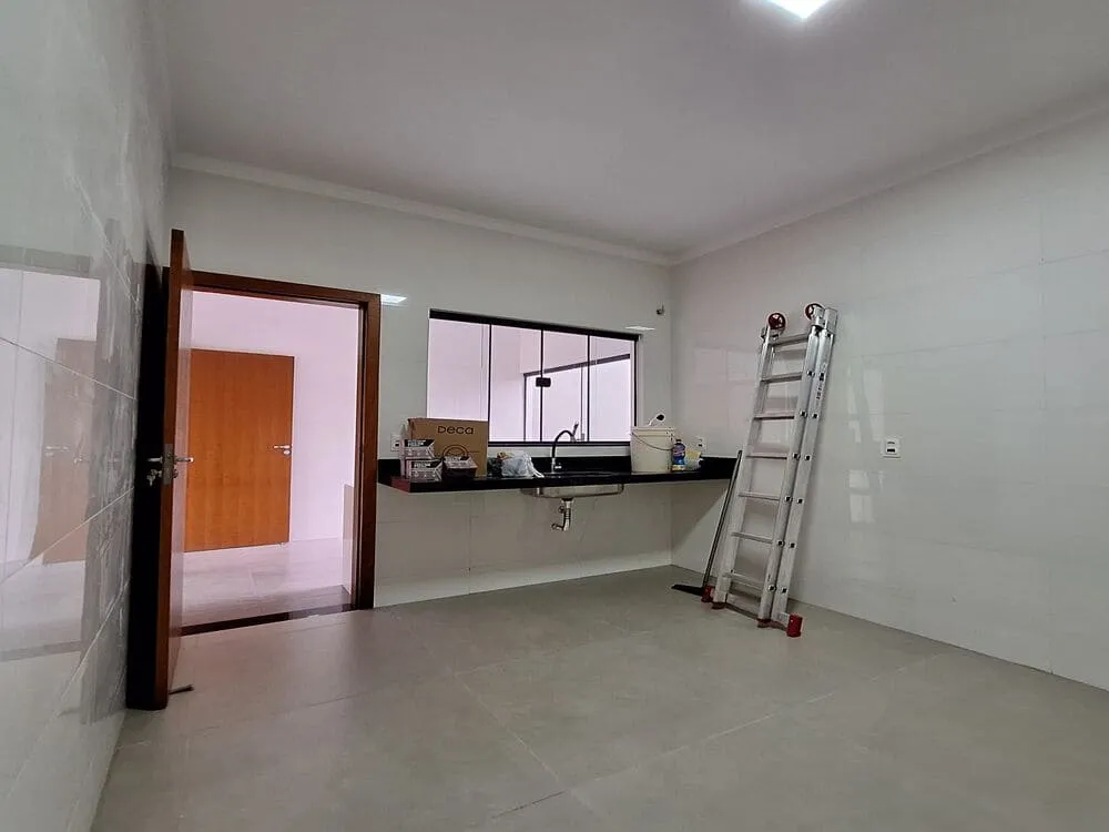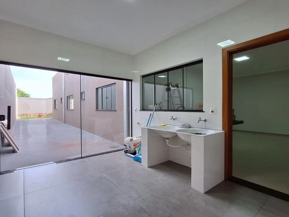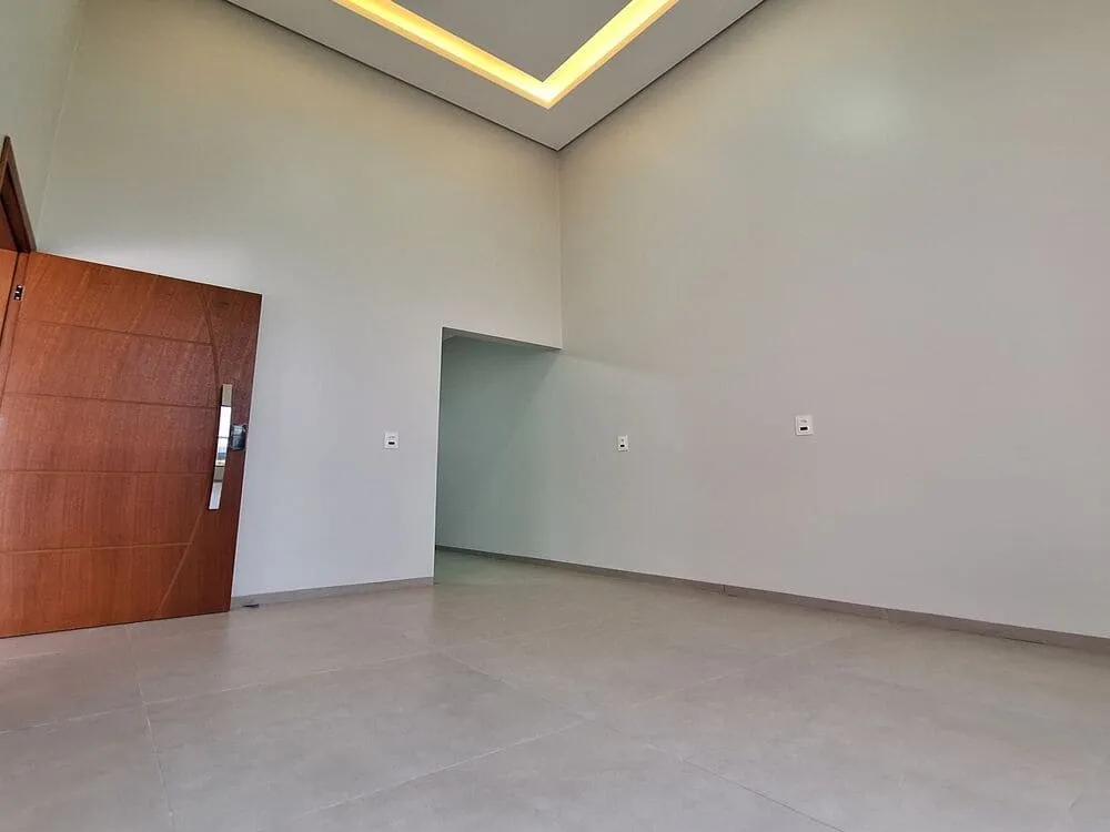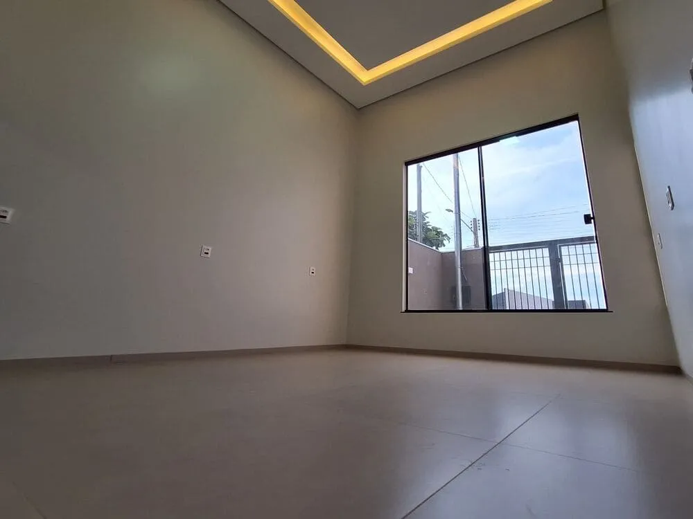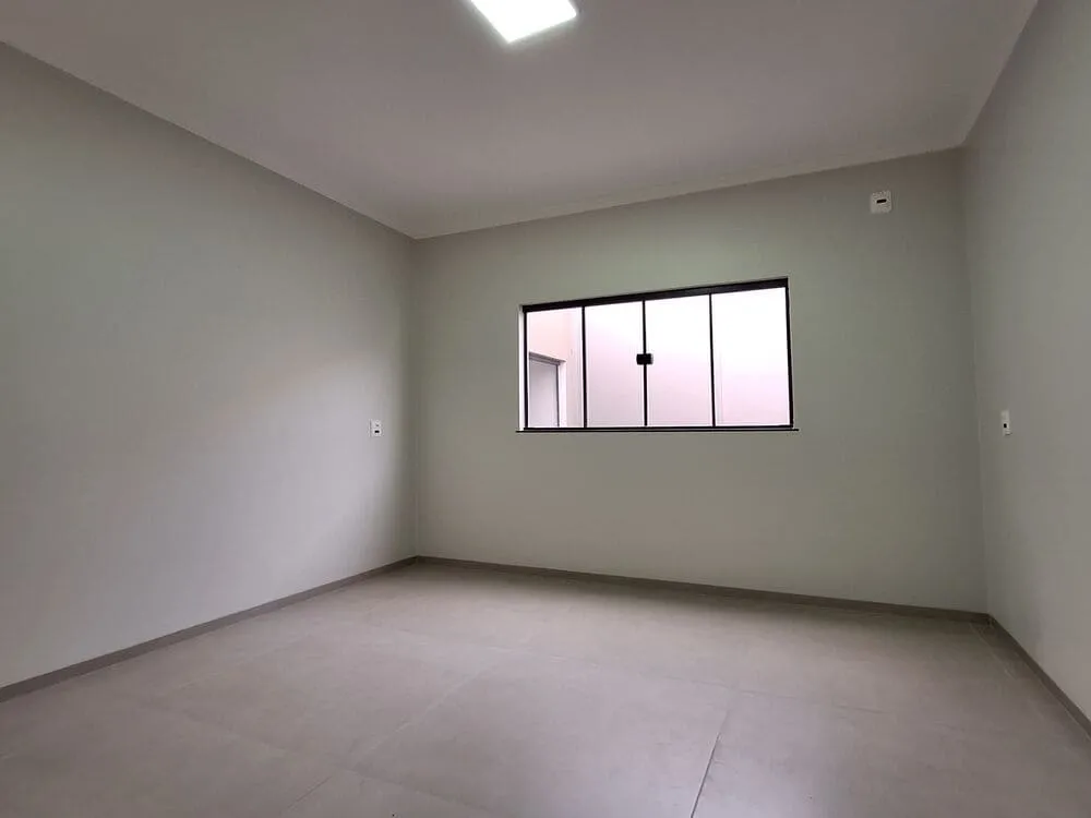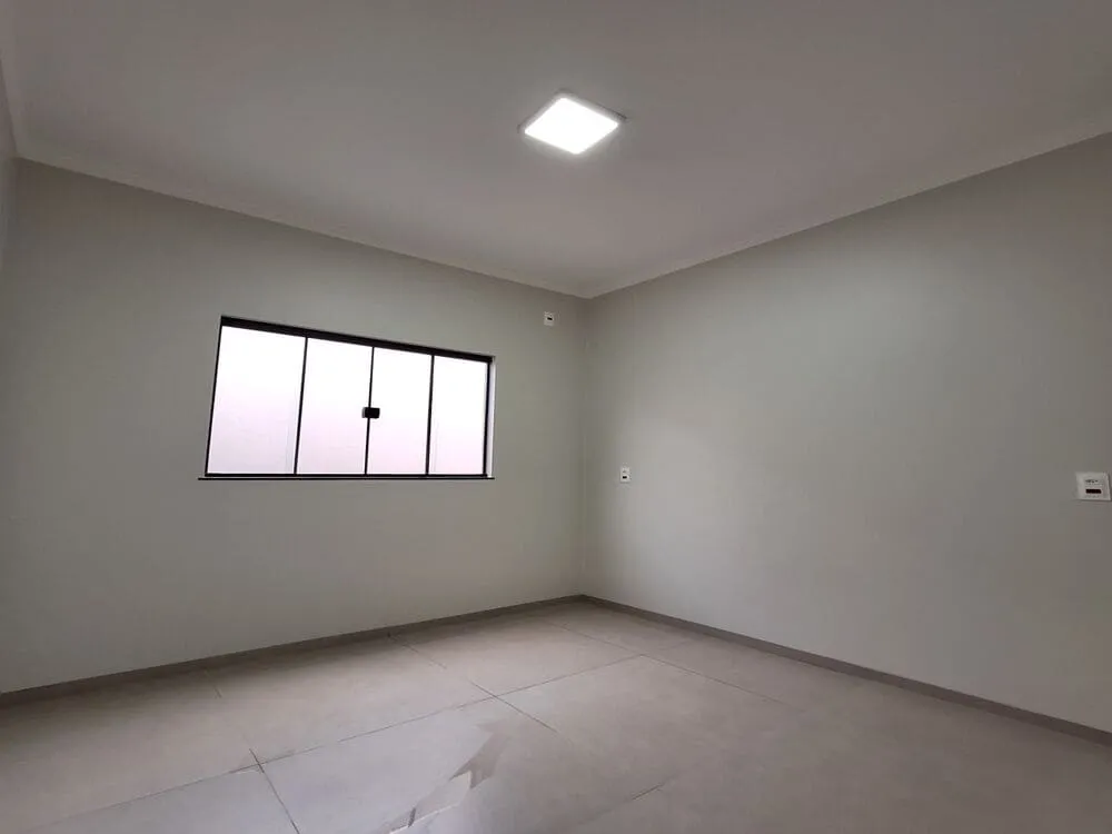 Casa nova à venda no bairro Flamboyant, teto todo na laje com o pé direito duplo da sala de 4,60, cozinha, em uma ótima localização, com três dormitórios sendo um deles uma suíte ampla, com garagem coberta, espaço nos fundos, área de serviço fechada, portão de elevação, portão eletrônico, casa com um ótimo acabamento, uma bela casa para bem morar com muito conforto e comodidade.